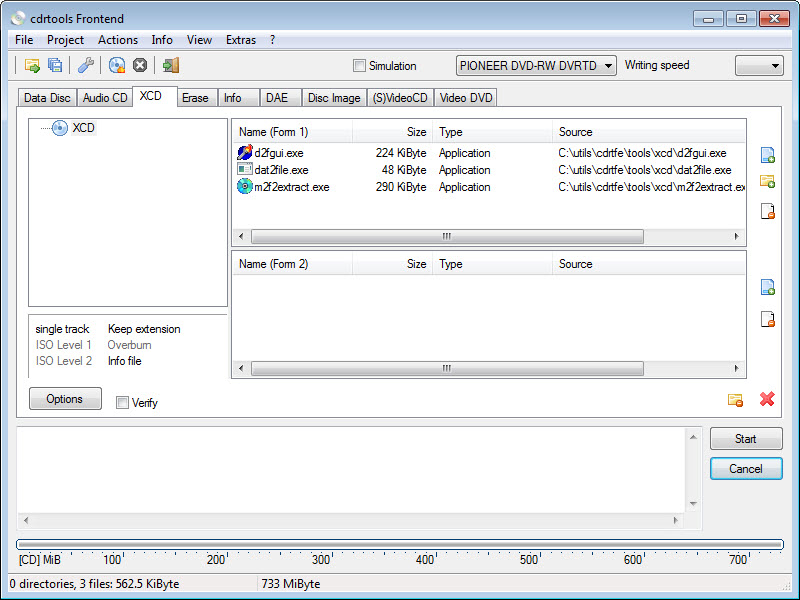 Cdrtfe burns CDs, DVDs, and Blu-ray discs. As Open Source software, it has an impressive array of features, such as writing bootable discs, audio CDs, XCDs, VCDs, and DVD-Video discs.